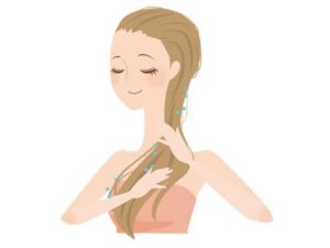 毛先まで優しく揉みこみ、潤いを与えます。