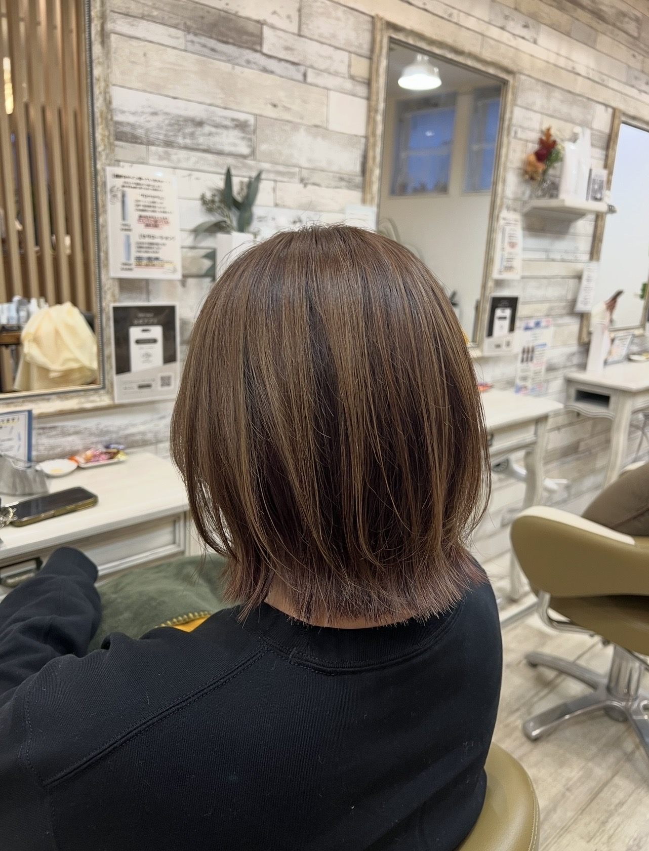 切りっぱなしボブ×ナチュラルブラウンで大人可愛くをテーマに!
