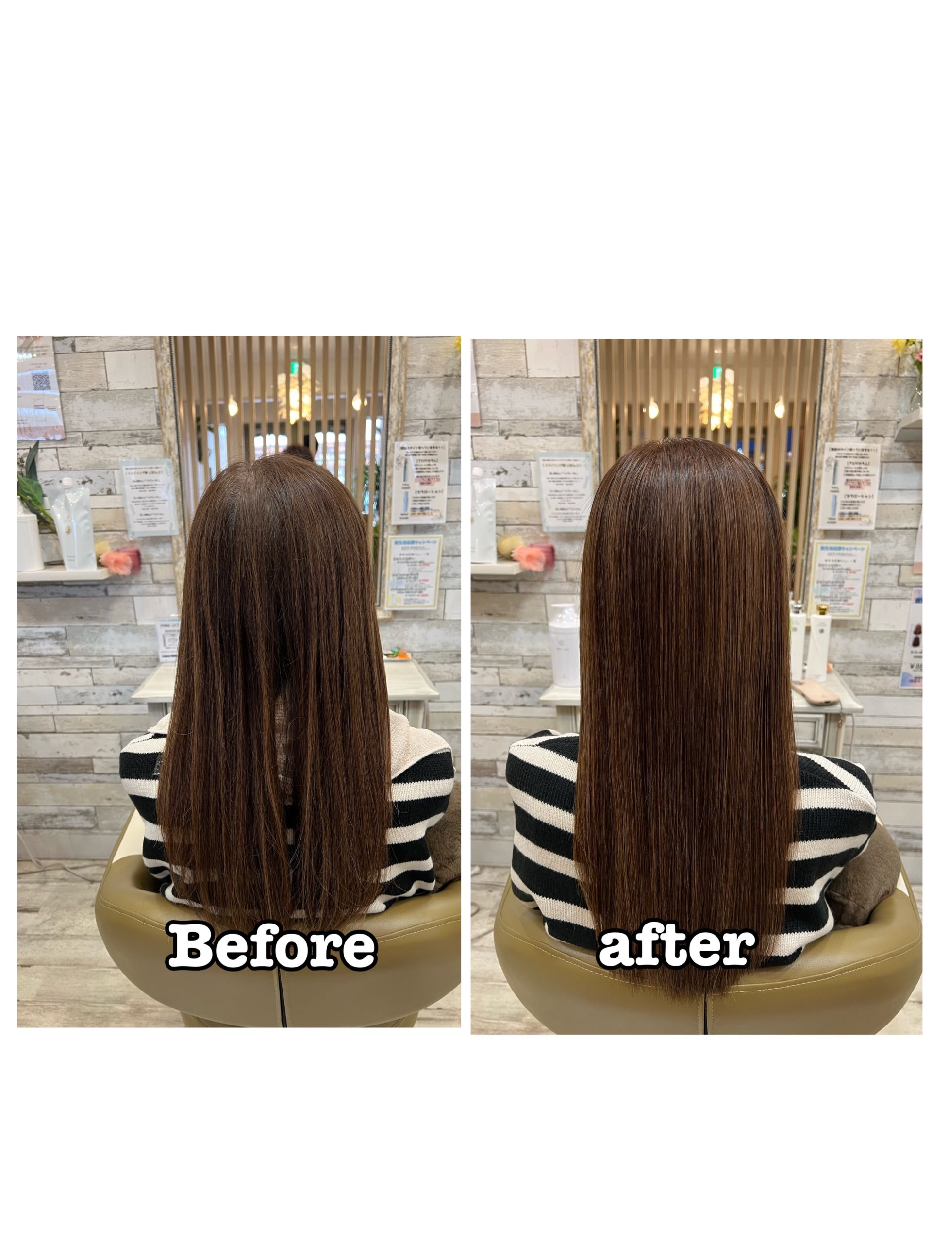 Afterはツヤがしっかり出て、自然にまとまる扱いやすい髪に。