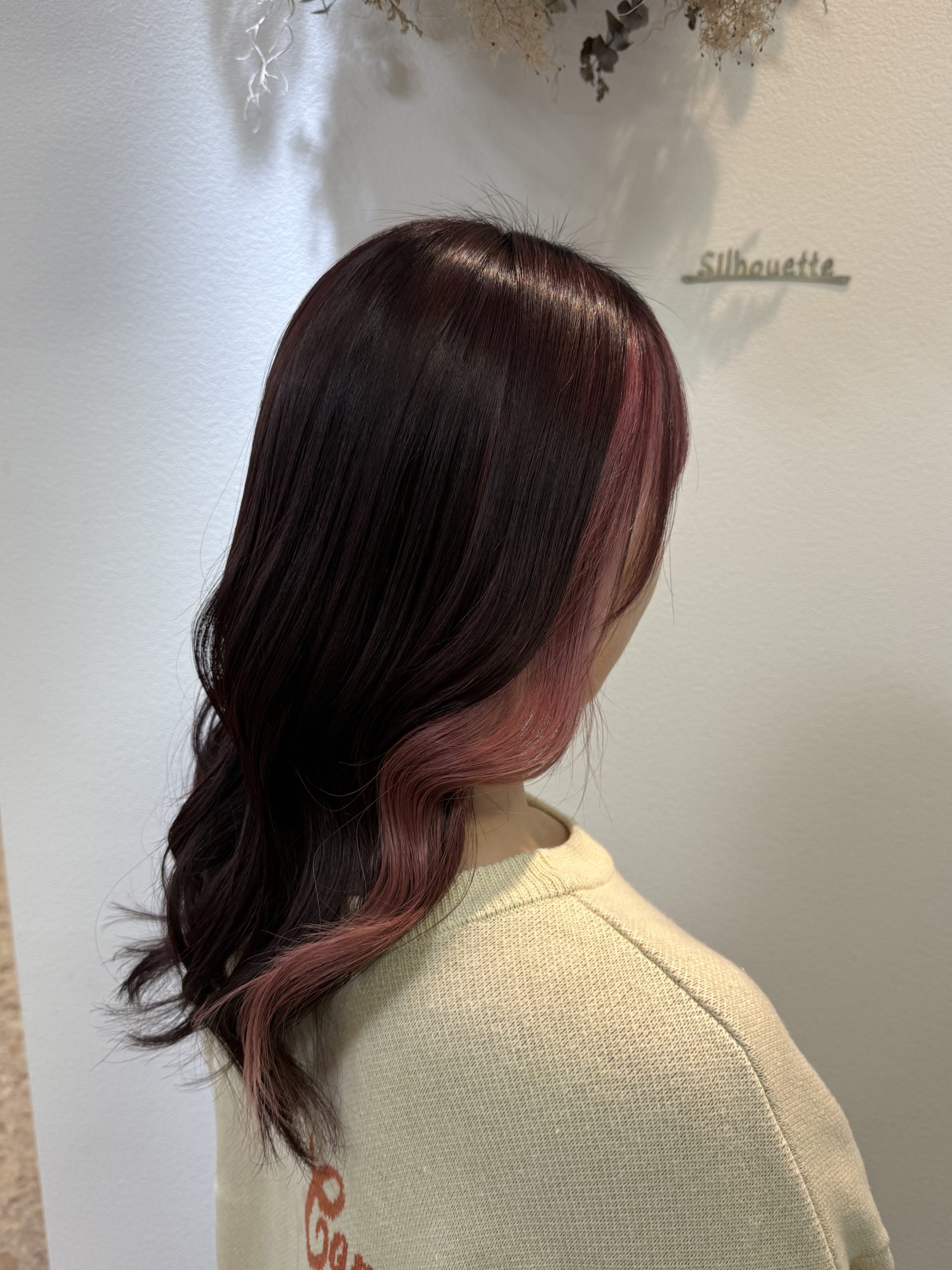髪の内側にカラーを入れることで、さりげなく印象を変えられるデザインカラーです。